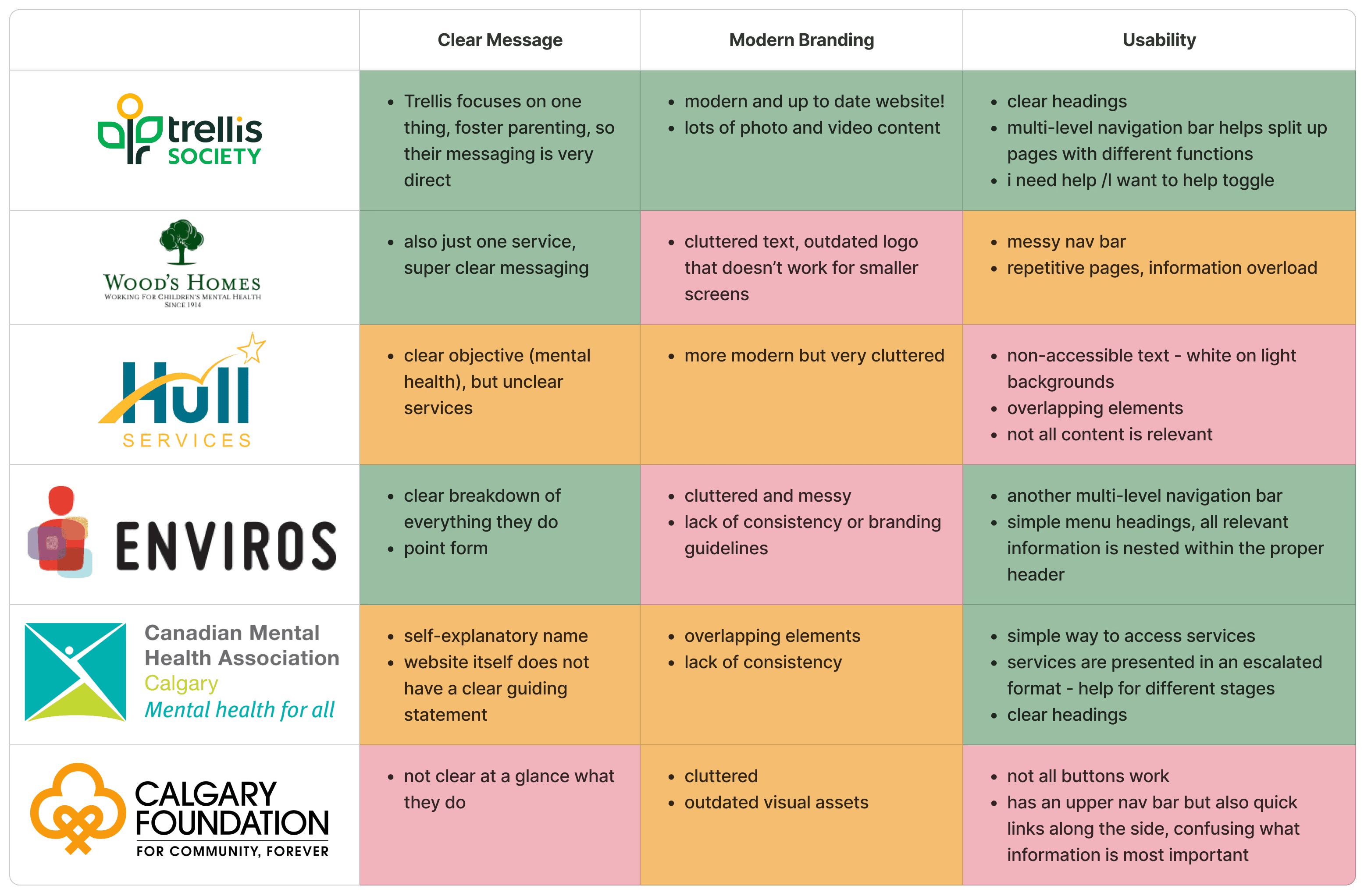 Next, I conducted a competitive analysis to see where we were falling short with other companies in the field and what we could learn from their brand identities.